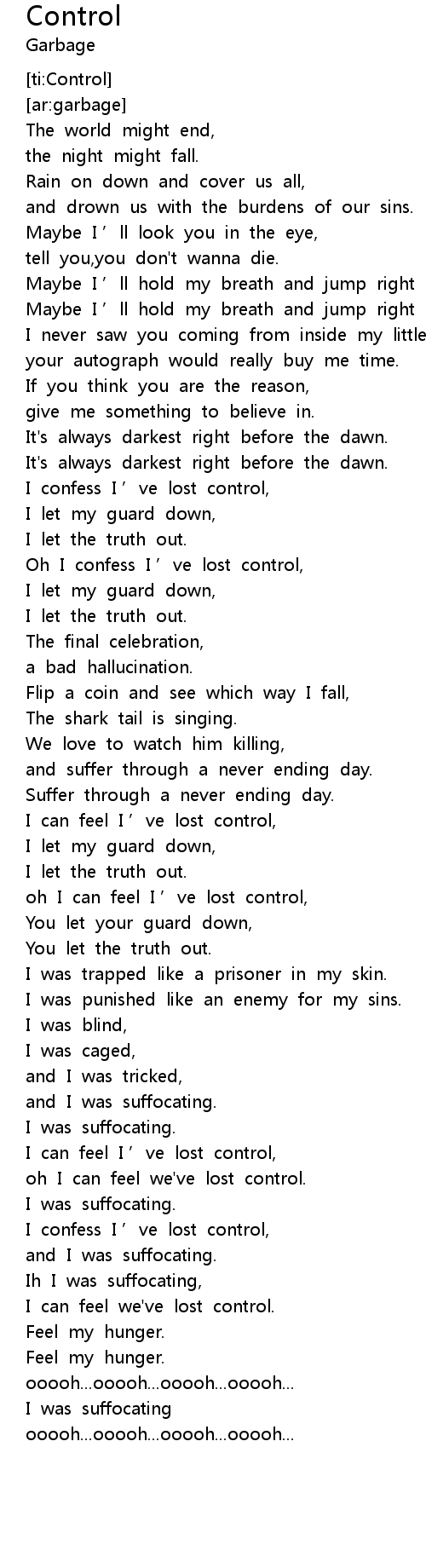| [02:22.77] | oh I can feel I ’ve lost control, |