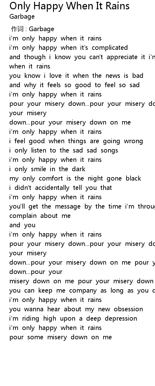 | [00:10.01] | and though i know you can' t appreciate it i' m only happy when it rains |