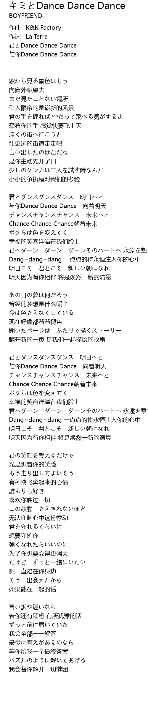 | 歌曲 | キミとDance Dance Dance |
