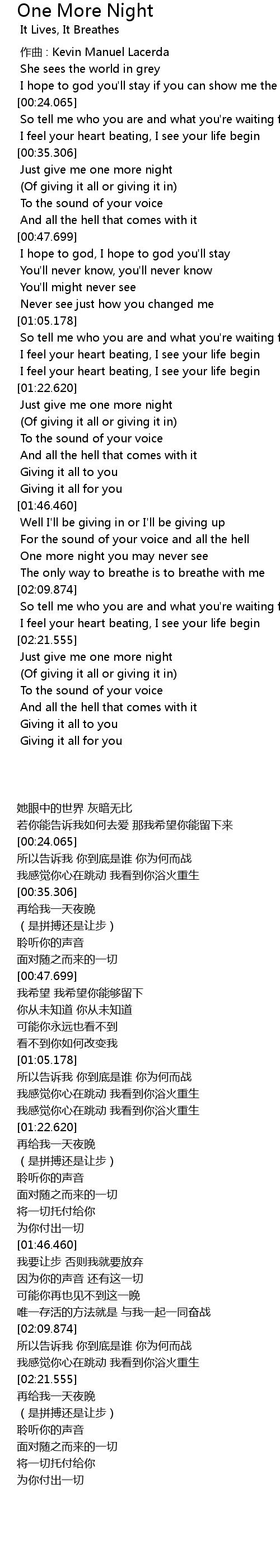 | [00:35.868] | Just give me one more night |