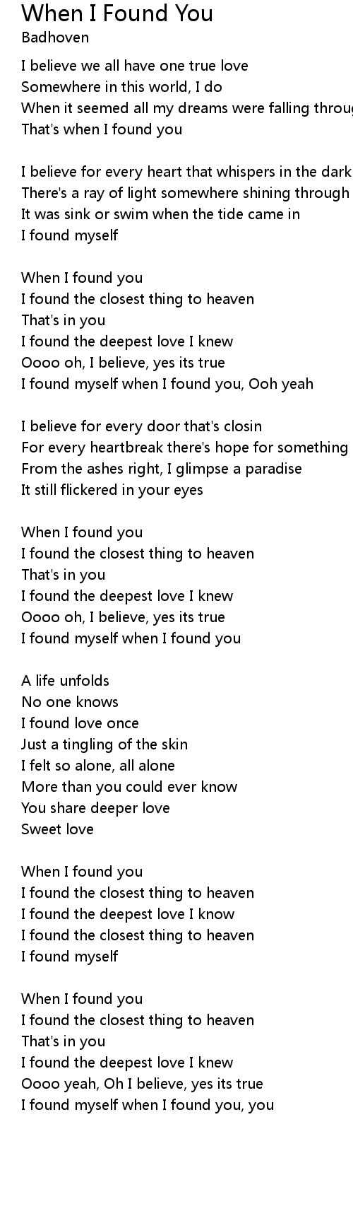 | I found myself when I found you, you |