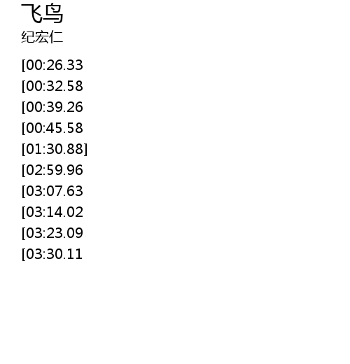 | [03:36.09][02:59.96][02:25.14][00:54.91] | zhi shi wo shi yi zhi zi you ben xiang de fei niao |