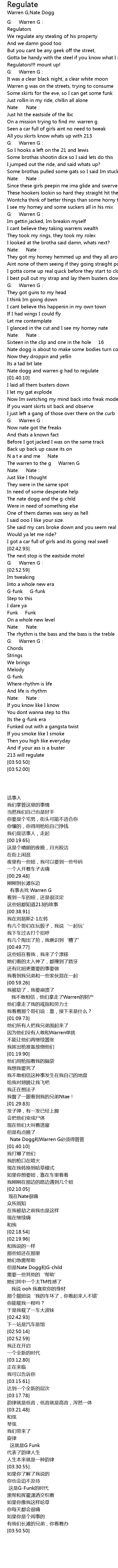 | [01:37.25] | Nate dogg and warren g had to regulate |