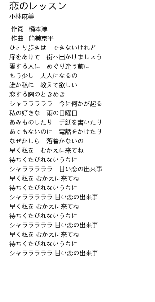 | [01:41.996] | シャラララララ 甘い恋の出来事 |