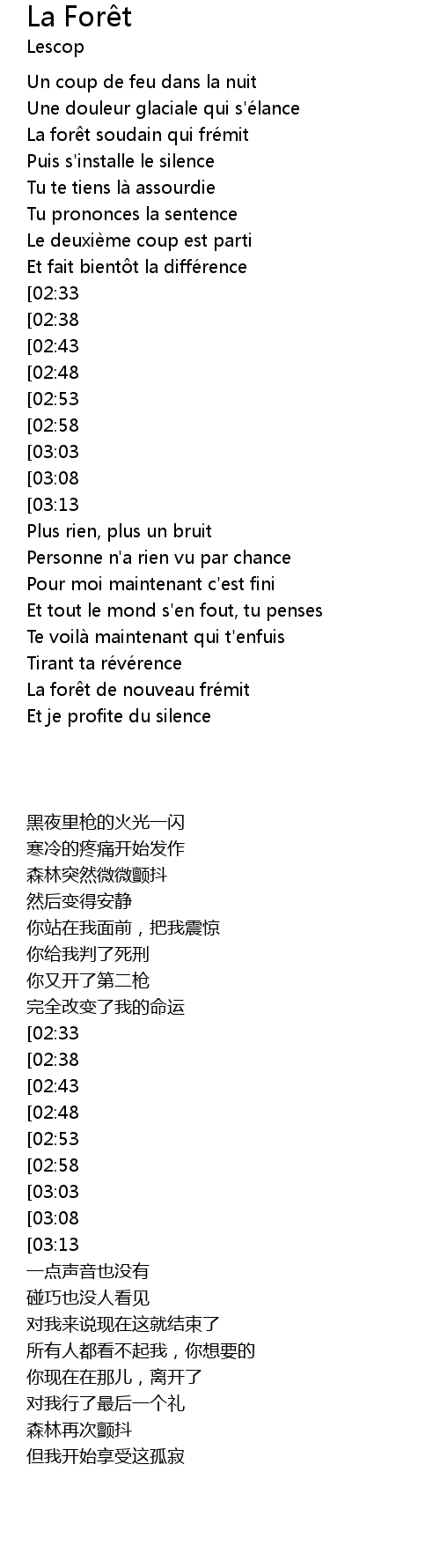 | [01:05][02:33] | Dans la for t je te retrouve à l' heure opportune |