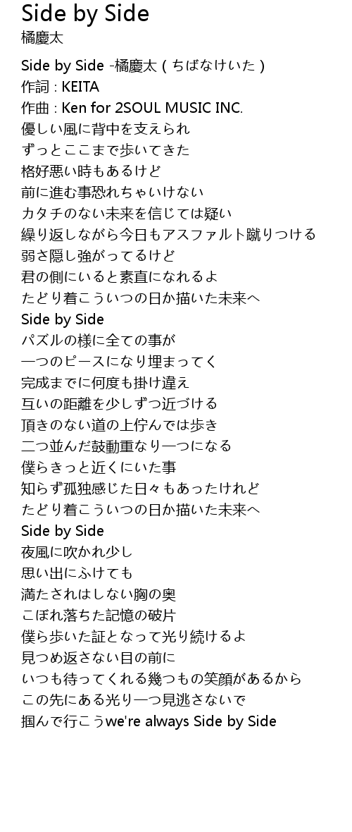 | [00:00.00] | Side by Side -橘慶太(ちばなけいた) |