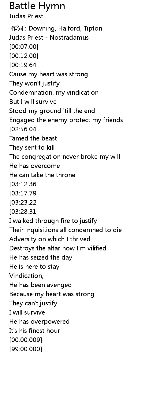 | [00:02.00] | Judas Priest Nostradamus |