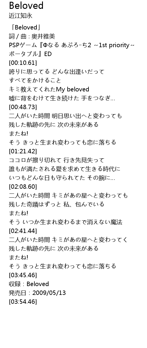 | [00:02.61] | 「Beloved」 |