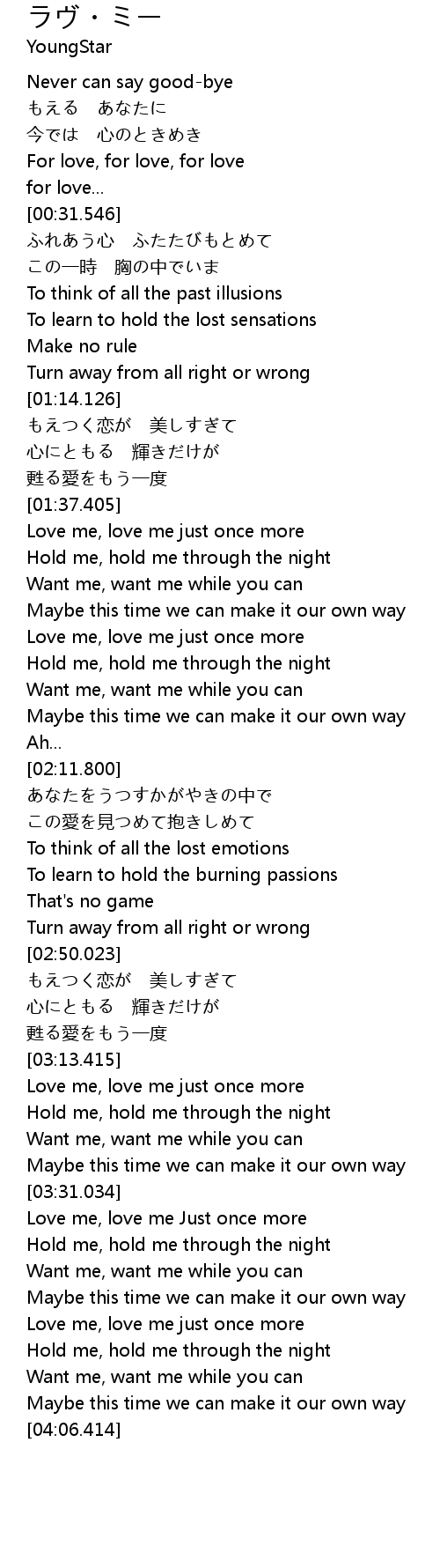 | [02:51.762] | もえつく恋が 美しすぎて |