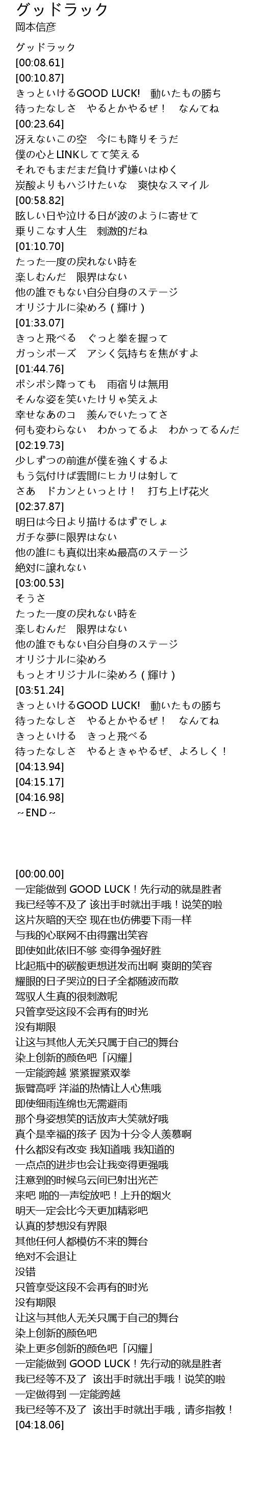 | [00:13.25] | GOOD LUCK! dòng shèng |