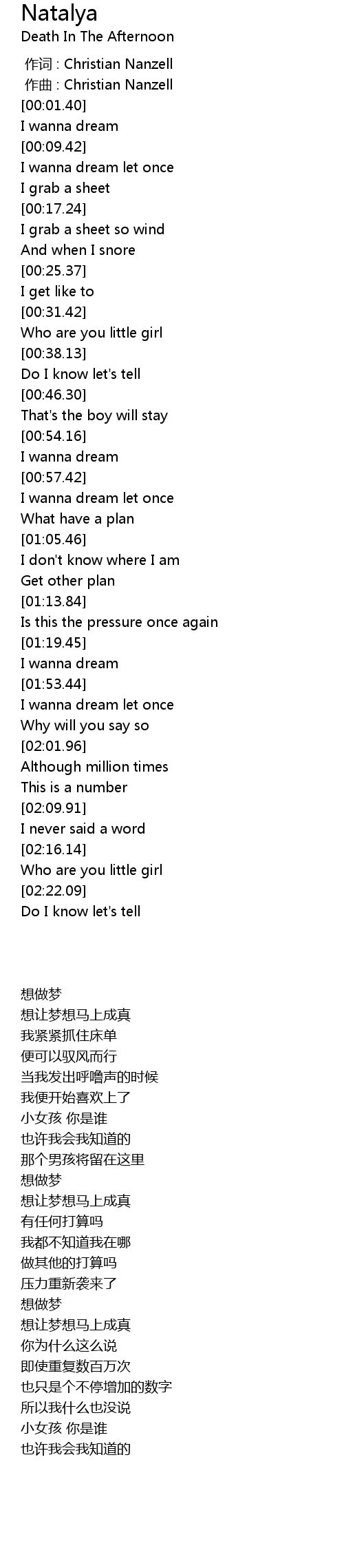 | [00:00.000] | zuò cí : Christian Nanzell |