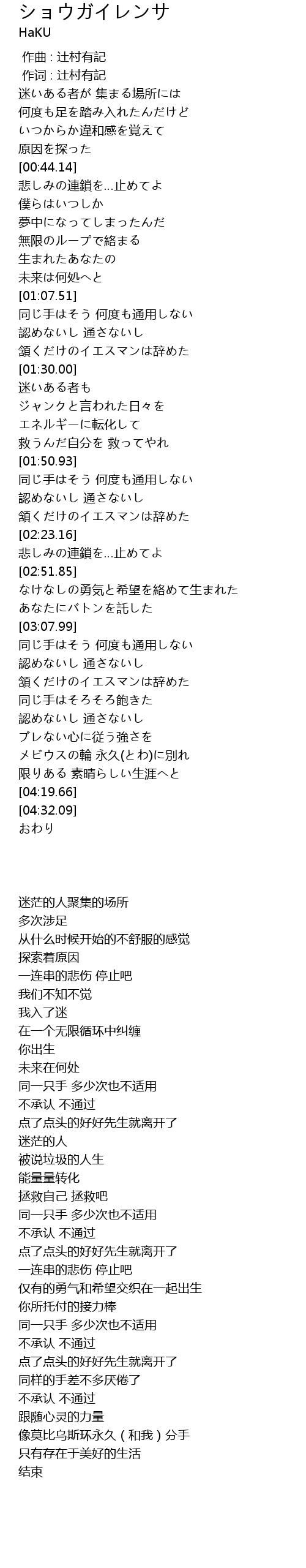 | [03:52.77] | メビウスの輪 永久(とわ)に別れ |