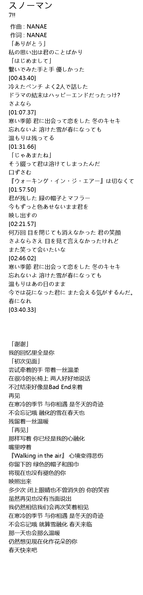 | [03:11.17] | 不会忘记哦 就算雪融化 春天来临 |