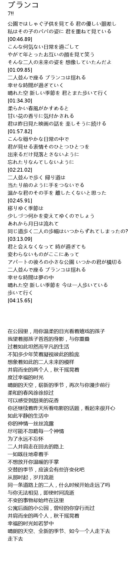 | [03:44.22] | 二人並んで座る ブランコは揺れる |