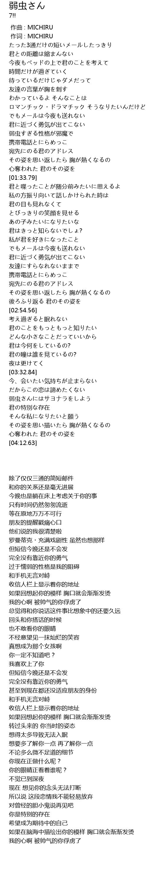 | [01:05.31] | 弱虫すぎる性格が邪魔で |