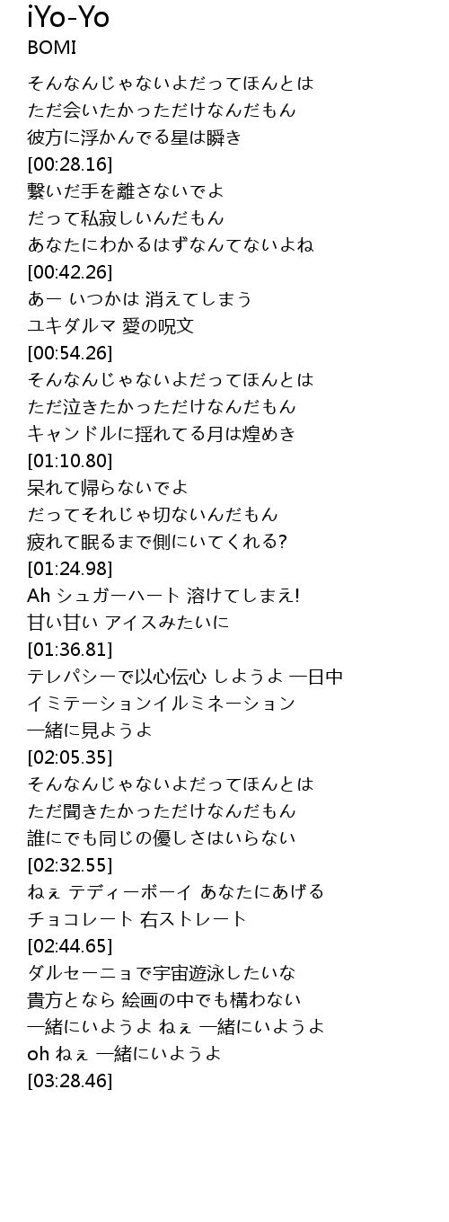 | [03:22.17] | oh ねぇ 一緒にいようよ |