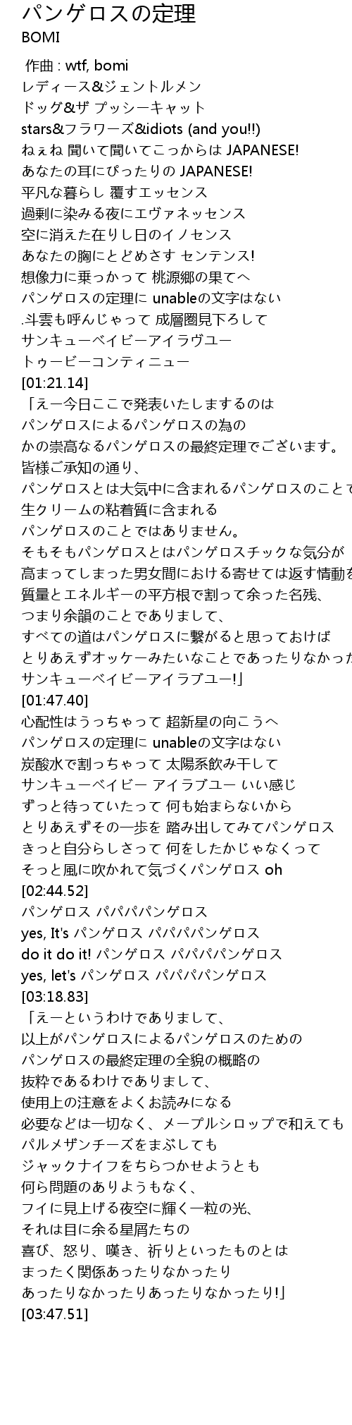 | [01:01.33] | パンゲロスの定理に unableの文字はない |