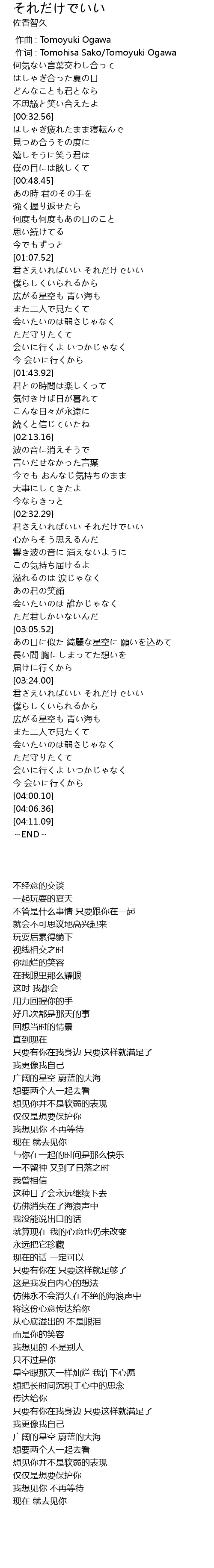 | [02:33.29] | 只要有你在 只要这样就足够了 |