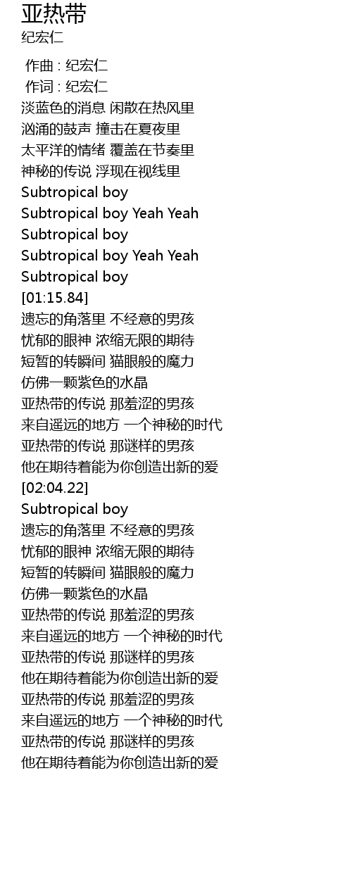 | [01:55.53] | 亚热带的传说 那谜样的男孩 |