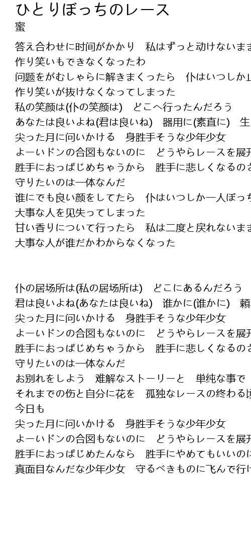 | あなたは良いよね(君は良いね) 器用に(素直に) 生きれるんだもん | |