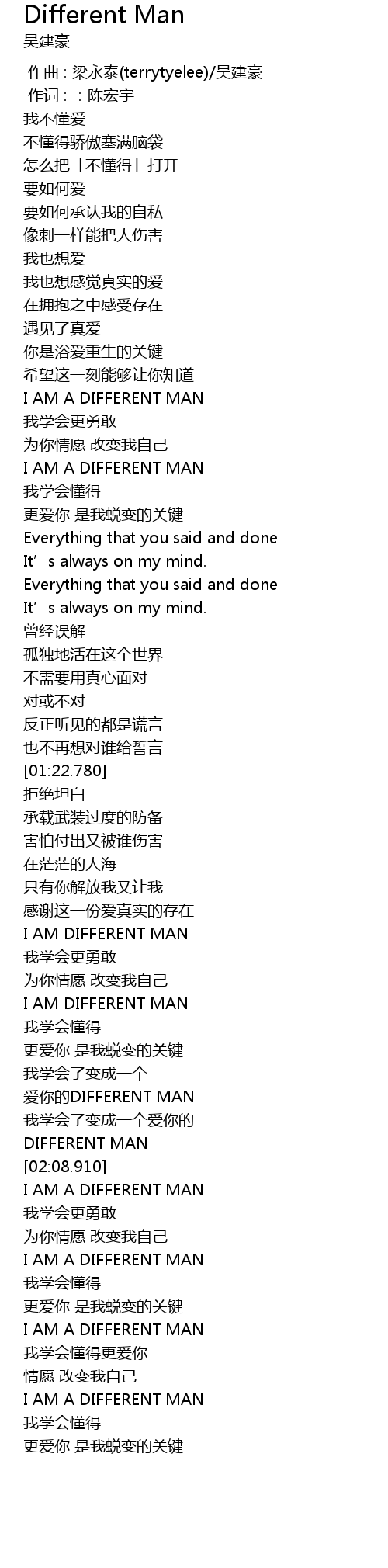 | [01:57.9] | 爱你的DIFFERENT MAN |