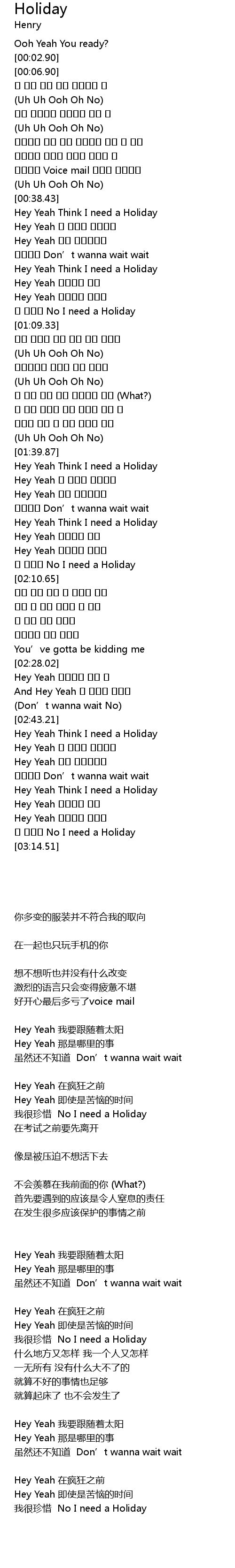 | [03:10.86] | 난 아까워 No I need a Holiday |