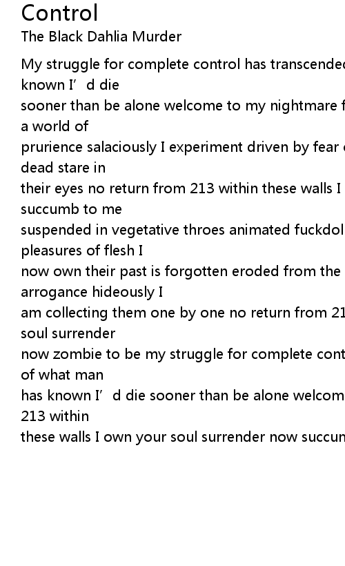 | am collecting them one by one no return from 213 within these walls I own your soul surrender | |