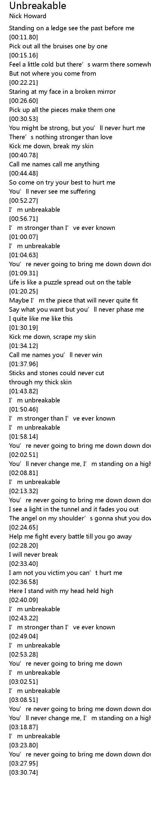 | [01:51.46] | I’m stronger than I’ve ever known |