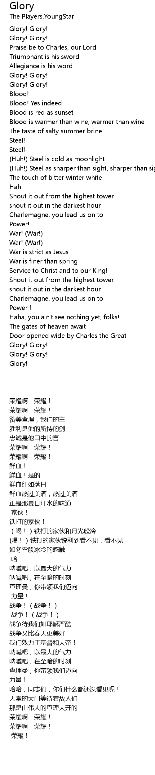 | [00:41.01] | Glory! Glory! |