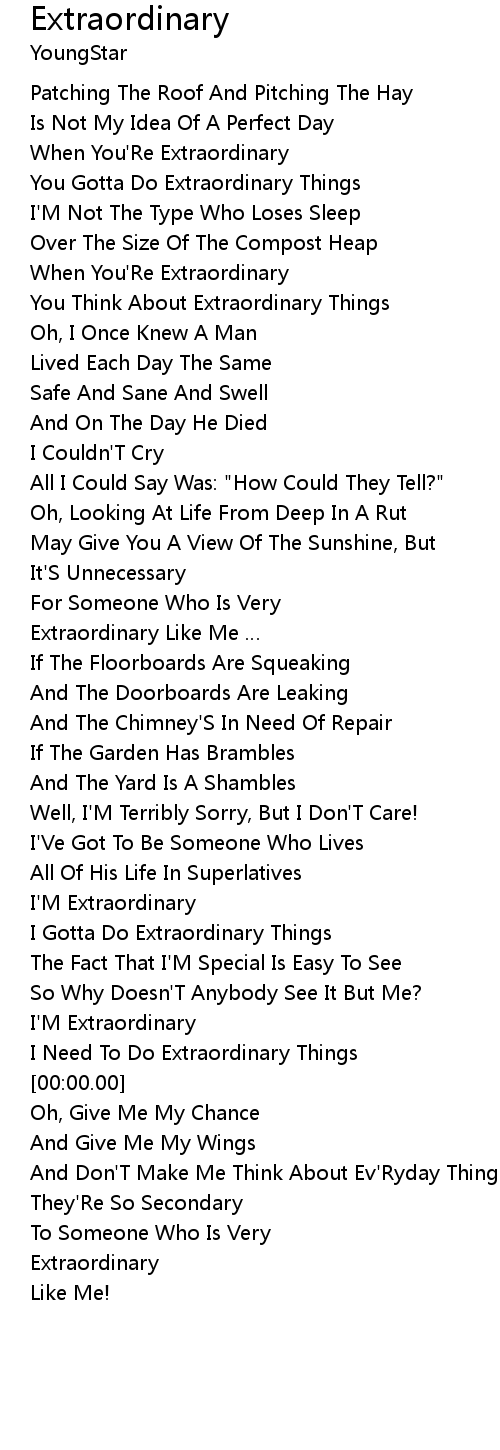 | [01:30.48] | I Gotta Do Extraordinary Things |