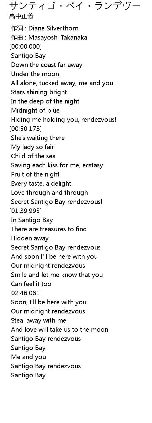 | [00:17.104] | Santigo Bay |