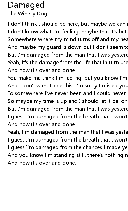 I guess I'm damaged from the breath that I won't led me astry. |