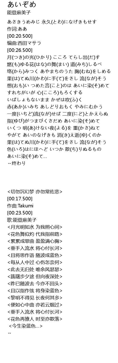 | [04:00.260] | あいに染(そ)めて… |