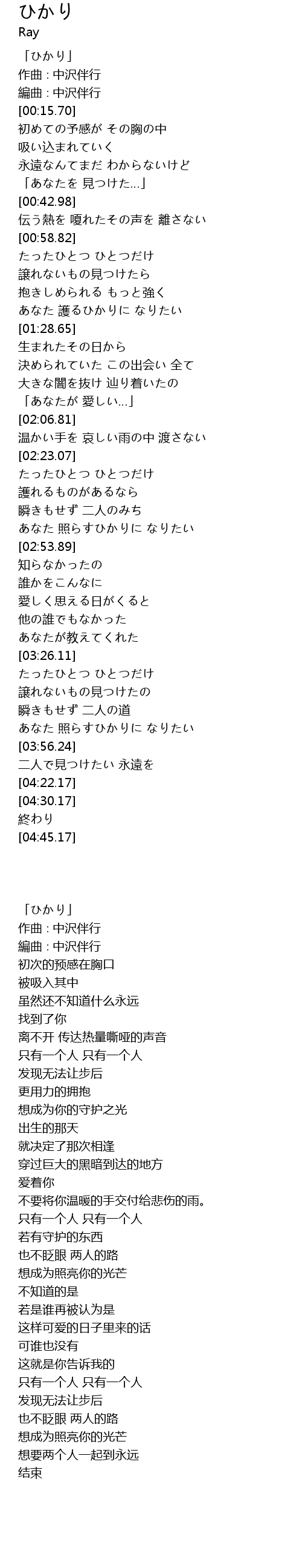 | [02:45.18] | あなた 照らすひかりに なりたい |