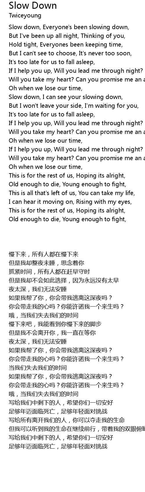 Slow down, Everyone's been slowing down, |