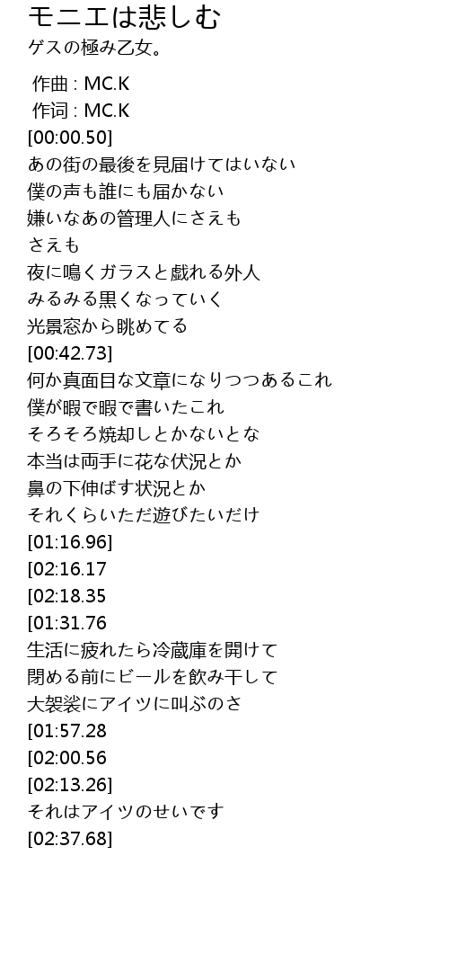 | [00:48.39] | 何か真面目な文章になりつつあるこれ |