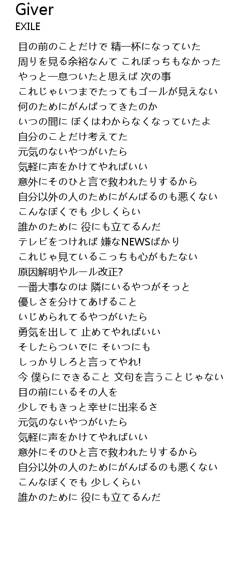 | 歌曲 | Giver |