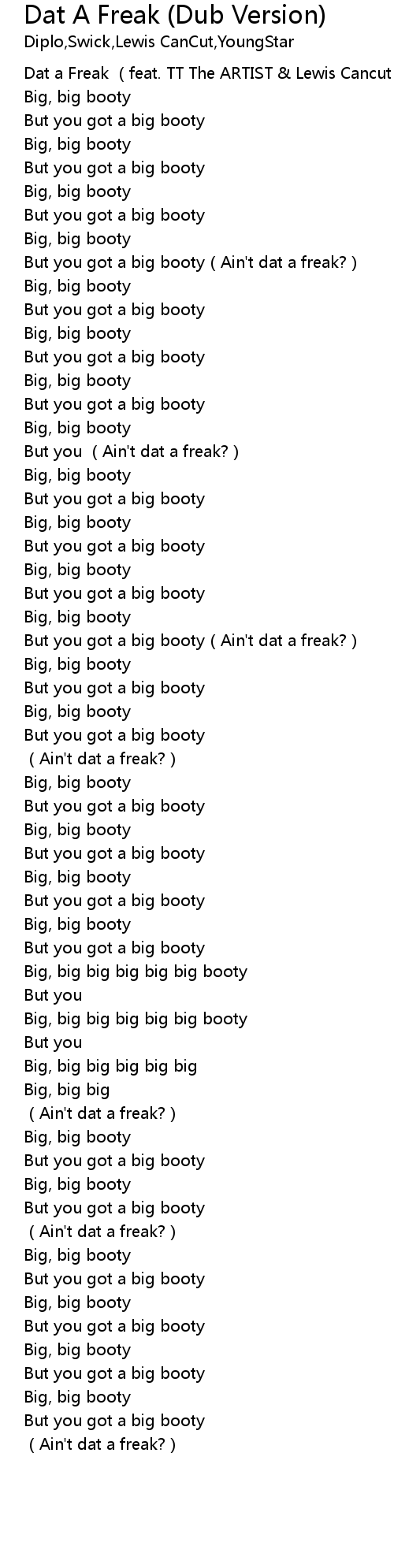 | But you got a big booty Ain' t dat a freak? | |