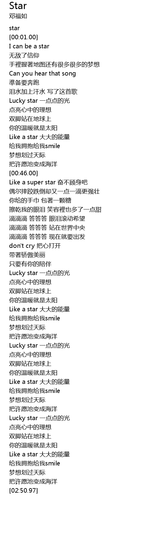 | [02:38.91] | Like a star 大大的能量 |