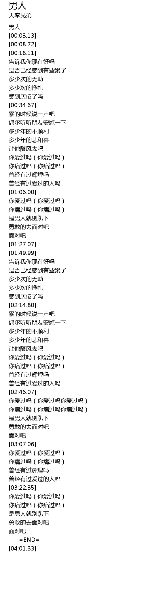 | [03:31.98] | shì nán rén jiù bié pā xià |