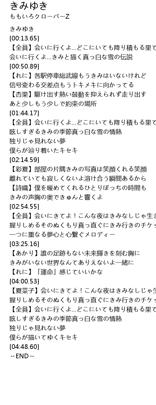 | [04:19.26] | 【全員】会いに行くよ...どこにいても降り積もる果てない想い |