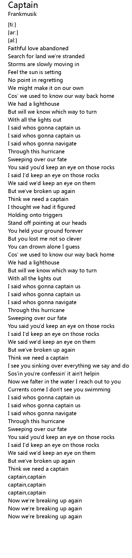 I said whos gonna captain us |