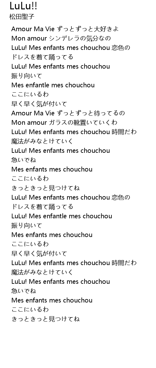 | [02:46.109] | LuLu! Mes enfants mes chouchou lian se |