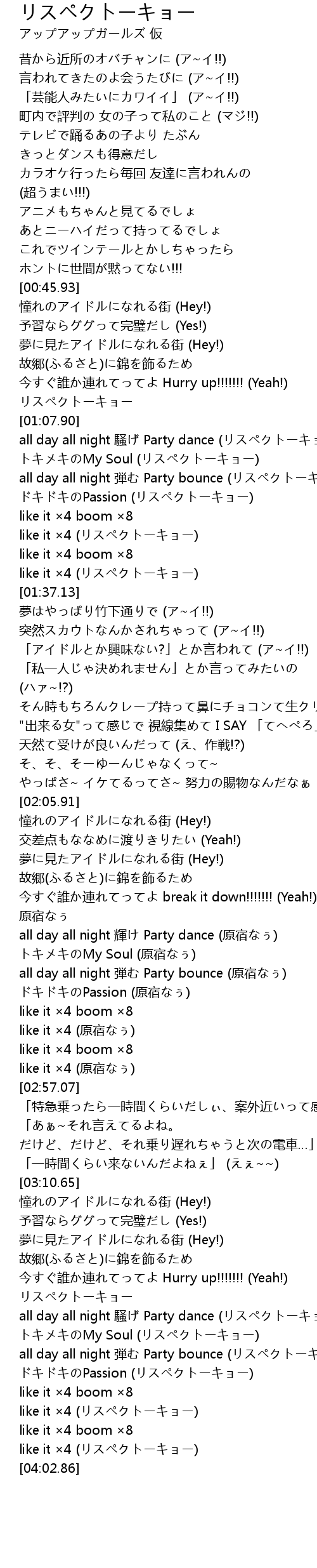 | [03:58.74] | like it ×4 (リスペクトーキョー) |