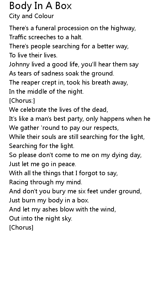 Just burn my body in a box. |