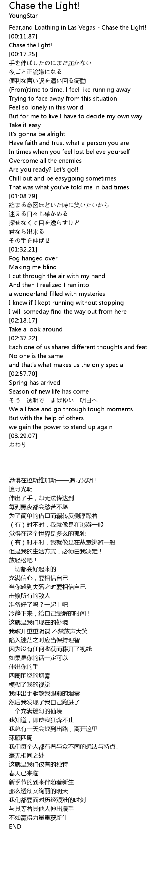 | [00:00.00] | Fear,and Loathing in Las Vegas - Chase the Light! |