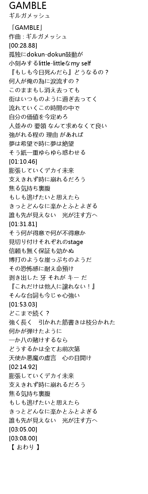 | [00:11.88] | 作曲∶ギルガメッシュ |