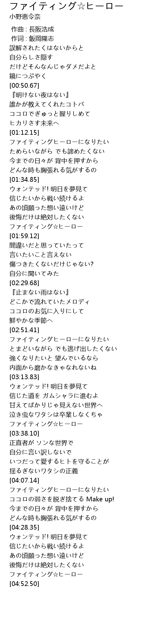 | [01:55.67] | ファイティング☆ヒーロー |