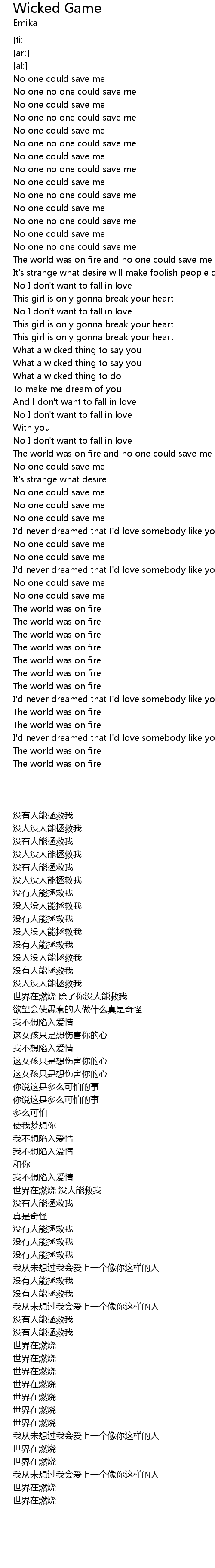 The world was on fire and no one could save me but you |