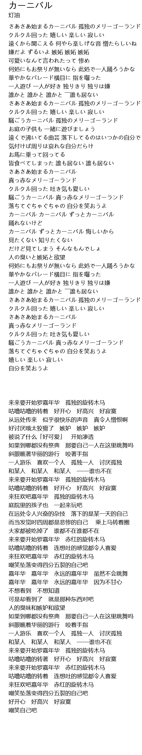 | [02:13.36] | カーニバル カーニバル ずっとカーニバル 踊れないけど |